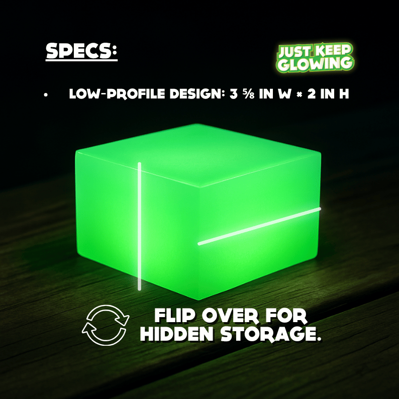 Let the heavy-duty Glow Cube XL light your path—anywhere, anytime. This unique, two-in-one design works both as a soft-glowing night light and a handy storage tray for your essentials. Flip it upright to illuminate bedrooms, bathrooms, hallways, or campsites—then turn it over to store keys, earbuds, or pocket gear so they’re easy to find in the dark.